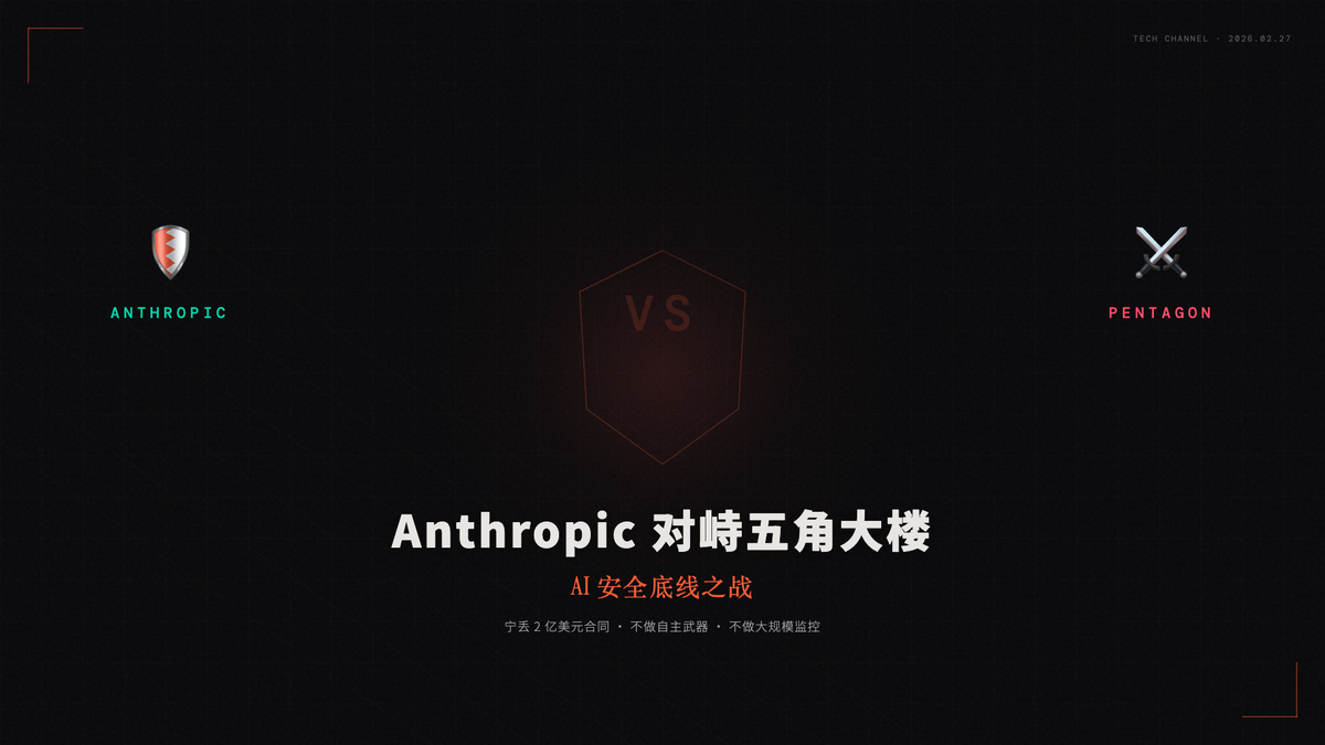 Anthropic CEO Dario Amodei 刚刚公开拒绝了五角大楼的最后通牒——宁可丢掉 2 亿美元的合同,也不让 AI 被用于自主武器和大规模监控。这场对峙的走向,可能直接影响你每天打开的那个 AI 编程助手还能不能继续用。